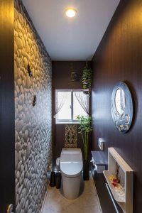 奥様が選んだストーン柄のクロスを貼り、トイレにも南国ムードが漂います。