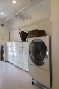 脱いだものはすぐに洗濯機へ入れられて、洗濯物は室内干しもできます。