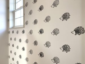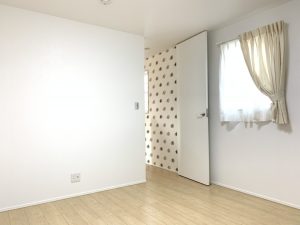 こちら階段を上ったところのアクセントクロスは奥様の憧れでした!