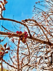 住まいの情報館の八重桜もここまで蕾がふくらんできました!