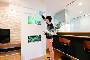 水槽のお手入れがしやすく、淡水魚も快適に過ごせてリビングと調和をするように。